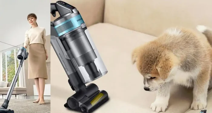 Velkommen til en omfattende anmeldelse af Samsung Jet 75E Pet poseløs stangstøvsuger VS20B75AGR1, en topmoderne rengøringsløsning skræddersyet til at imødekomme de højeste standarder for renlighed i dit hjem. Specielt designet med fokus på hjem med kæledyr, tackler denne kraftfulde stangstøvsuger effektivt alt fra genstridige dyrehår til ultrafint støv. Vi vil udforske dens innovative funktioner, herunder den digitale inverter-motor og det avancerede Jet-cyklonsystem.