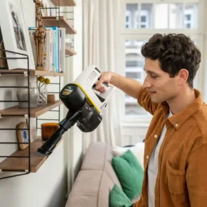 Kärcher Stangstøvsuger VC 4 kombinerer mobilitet med kraft i et let design på 1,3 kg. Dens boost-funktion og aktive mundstykke håndterer genstridigt snavs, mens Power Lock eliminerer behovet for at holde knappen nede. Ifølge analyser sparer dens 30 minutters driftstid tid i mindre husstande.