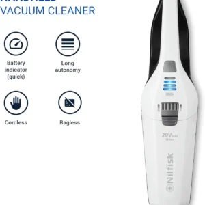 Nilfisk Handheld Quick 20VMAX EU er en let og effektiv håndholdt støvsuger til hurtige rengøringer i hjemmet. Denne ledningsfrie model i hvid fjerner støv og krummer fra møbler, trapper og biler med 115 W sugekraft og 0,6 liters beholder. Med op til 10 minutters runtime og vægt på kun 1,2 kg passer den perfekt til danske familier med små pladser. I denne test udforsker vi dens præstationer, fordele og daglige brug, så du kan beslutte, om den matcher dine rutiner. Oplev en smartere måde at håndtere småsnavs på uden besvær.
